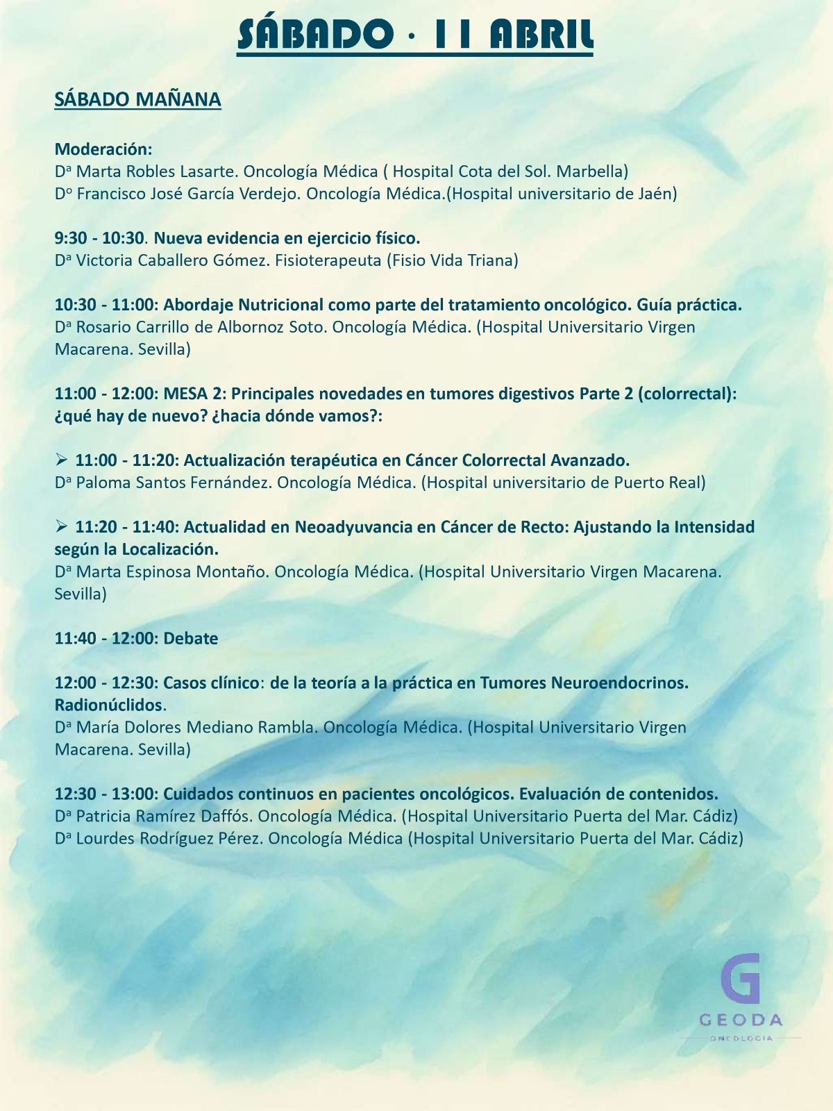 - 11:00 – 11:20: Actualización terapéutica en Cáncer Colorrectal Avanzado.